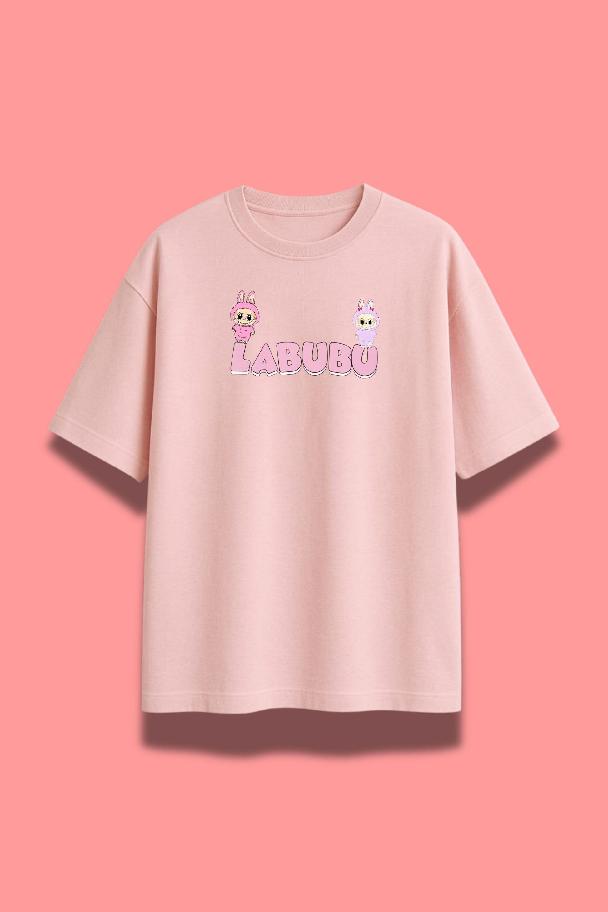 Cute Pink “Lobubu” Comic Graphic T-Shirt – Oversized Anime Tee for Girls & Women
