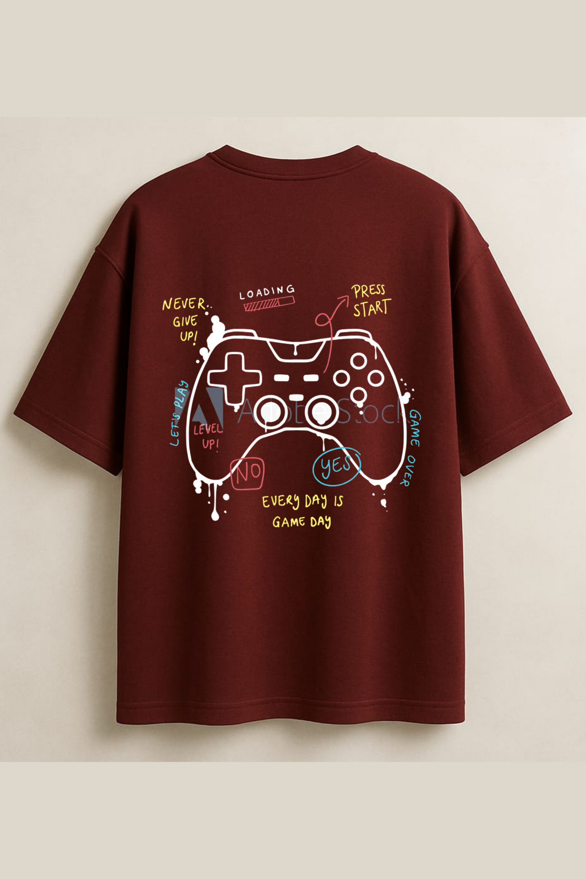 Level Up! Maroon Gamer Controller T-Shirt – Oversized Tee for Game Lovers